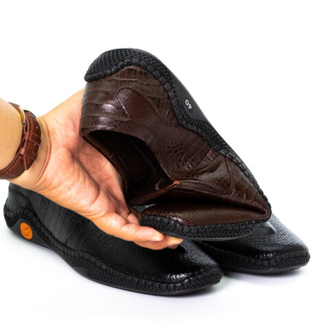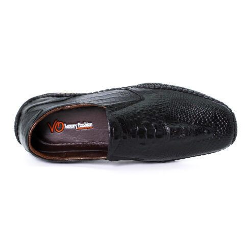 - Nếu quý khách yêu thích những mẫu giày da cá sấu vốn rất mắc tiền thì có thê lựa chọn mẫu giày mọi da bò dập vân cá sấu của VO, thiết kế trẻ trung theo phong cách mới nhưng không kém phần sang trọng và lôi cuốn, thì Giày mọi da bò vân cá sau đen sẽ là một lựa chọn thú vị.