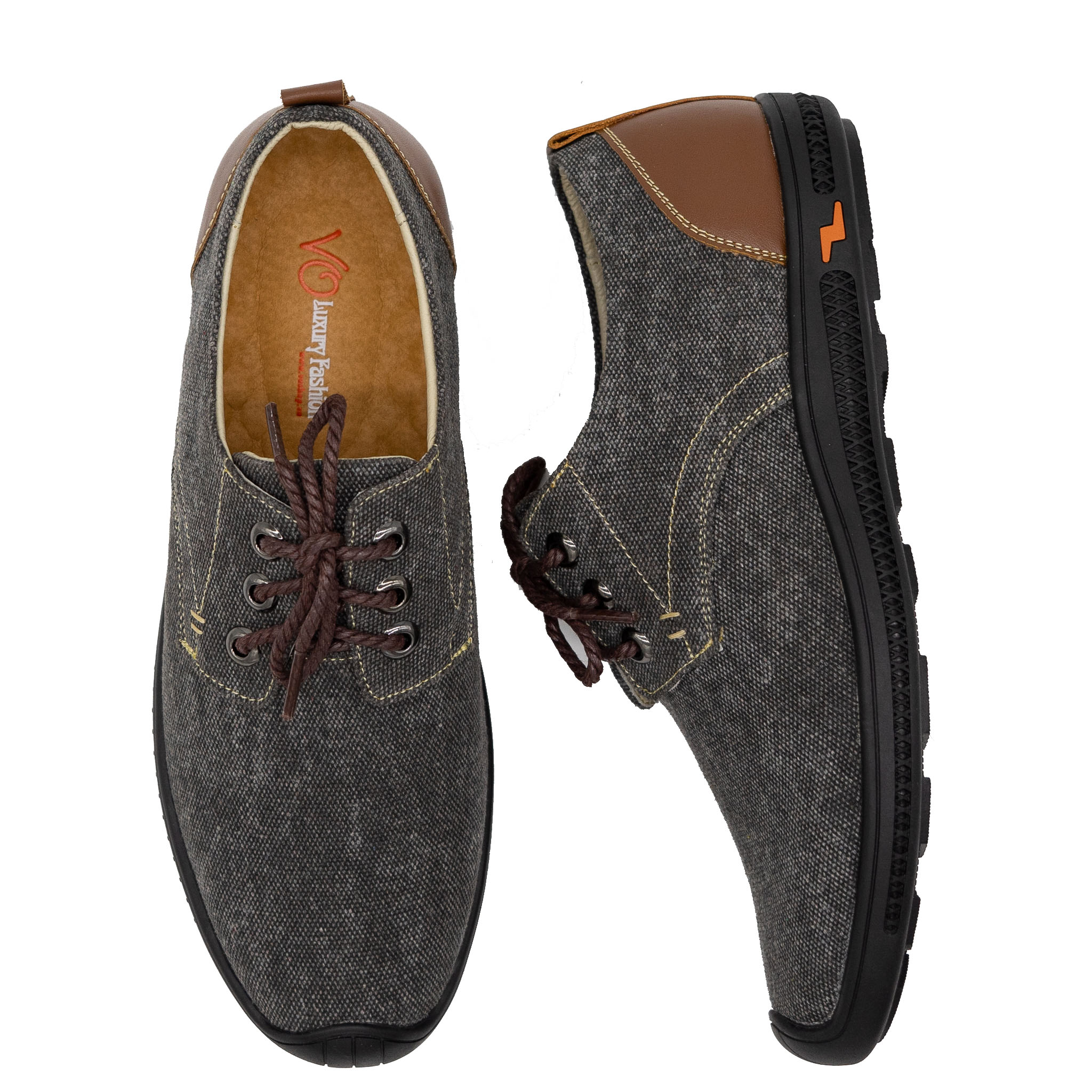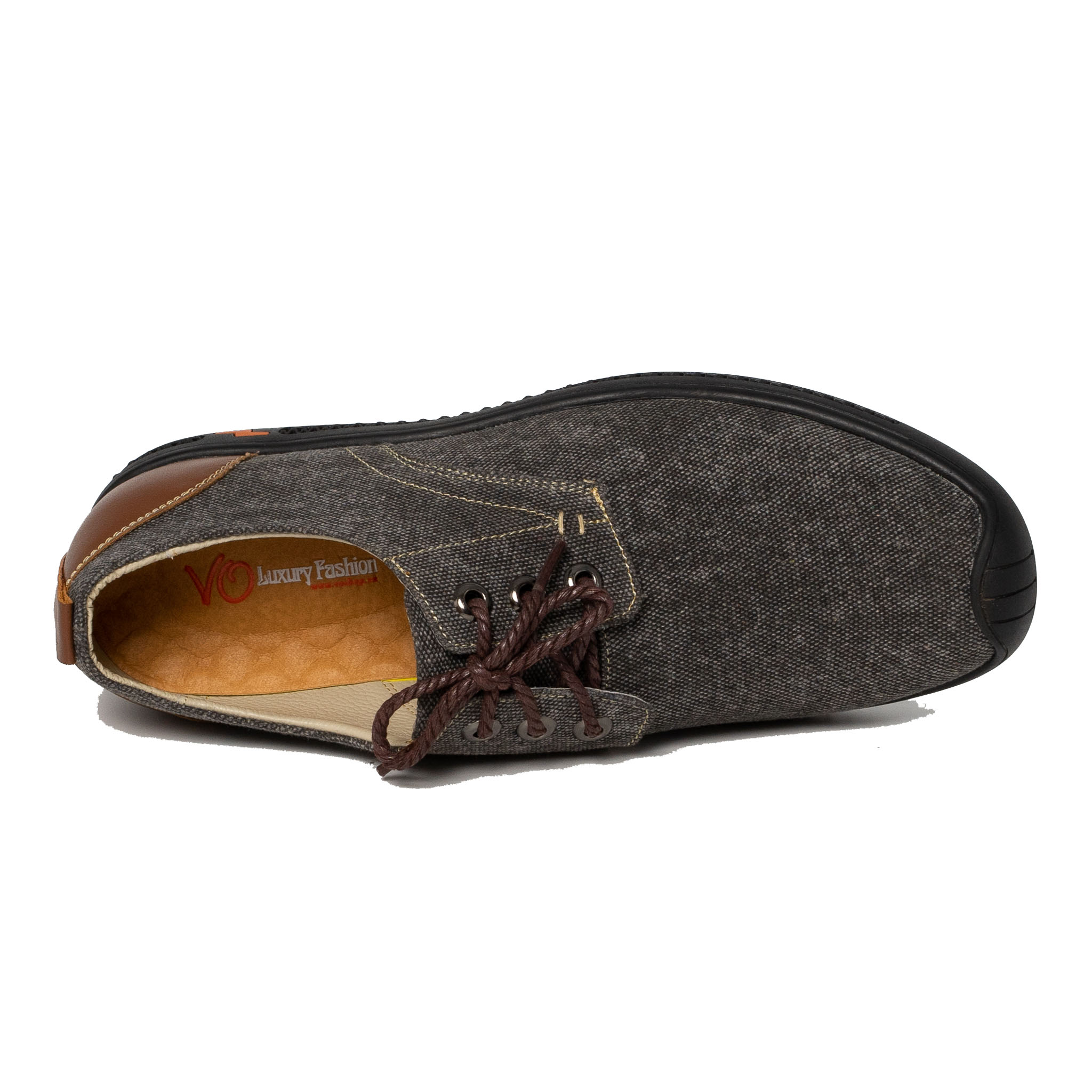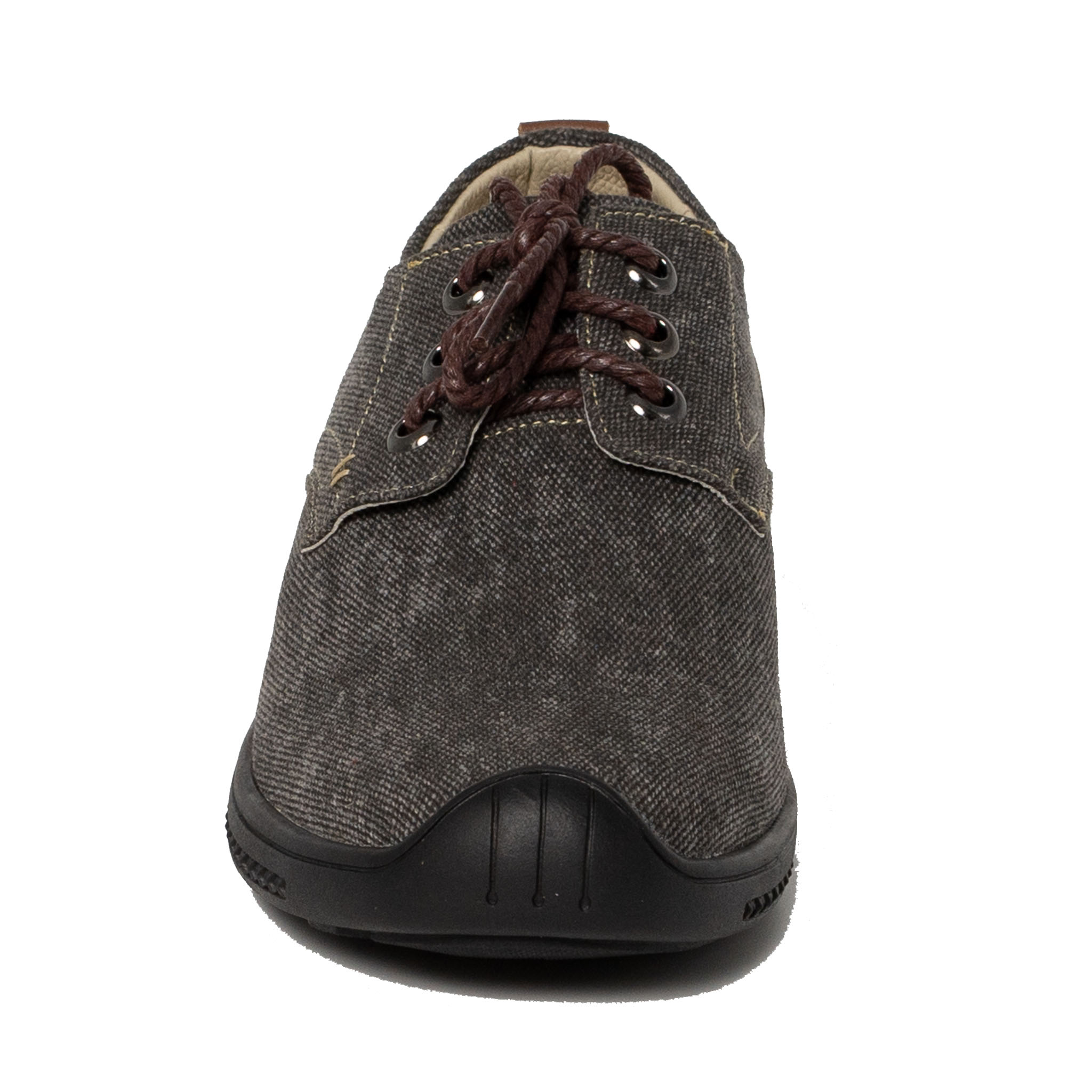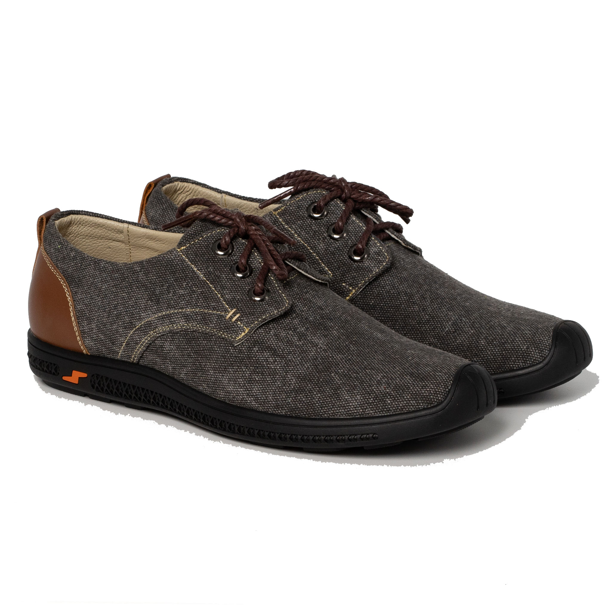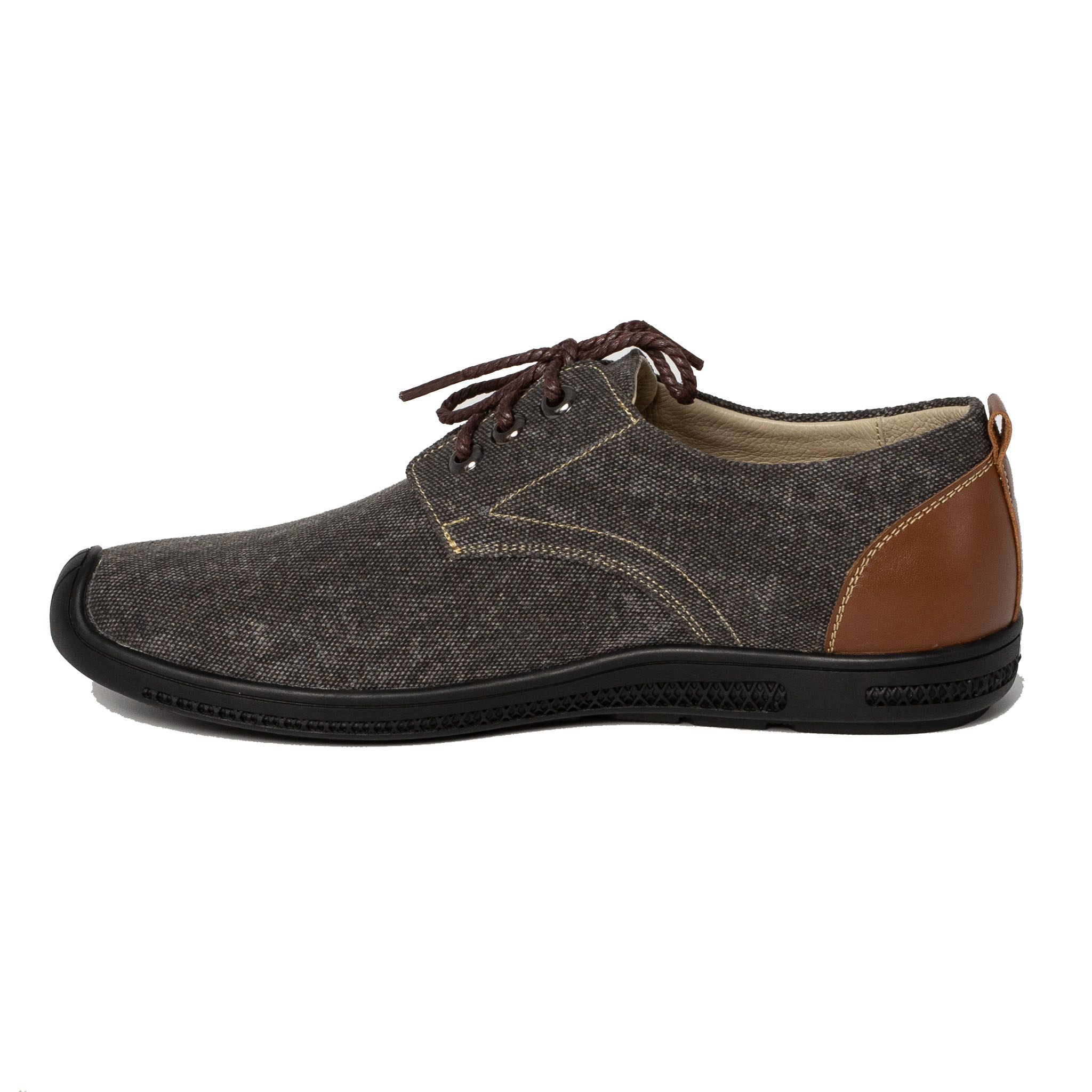 Mũi giày trơn màu xám xanh, phần trên cột dây màu nâu manly.
